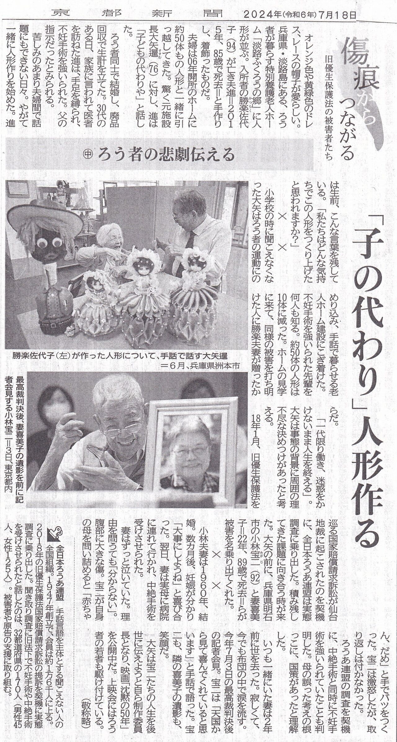京都新聞7月18日付け3面に大きく掲載。