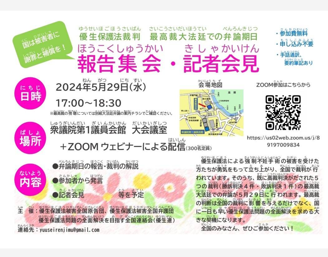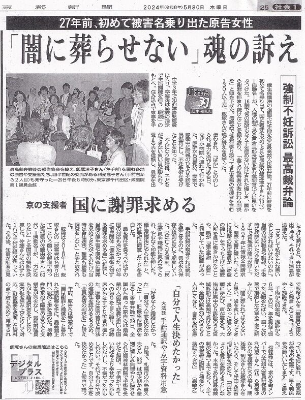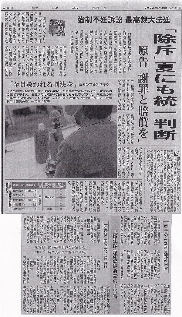 5月29日東京の最高裁判所大法廷で行われた弁論の様子は、NHKニュースでも手話通訳と字幕付きで報道されていたようです。お茶の間に流れると、「こうしたことがあったのだ」と気付いてもらえることになりますが、本来なら、もっと早くに取り上げて貰いたい事柄です。無念にも裁判の途中で亡くなられた被害者の方もおられますし、そもそも分かっているだけでおよそ25000人もの人が「不良子孫の出生防止」を目的に1948年に制定された旧優生保護法下で、1996年母体保護法に改正されるまでの間に不妊手術を受けさせられていました。裁判は起こさなくても、人知れず悩み苦しんだ被害者は多くおられるでしょう。
